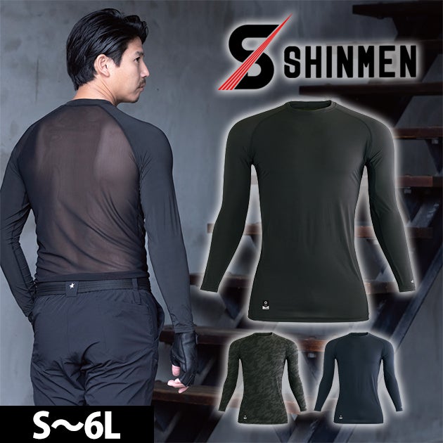 6. シンメン 0369 春夏インナー 作業着 バックメッシュエアリーロングスリーブ S~4L