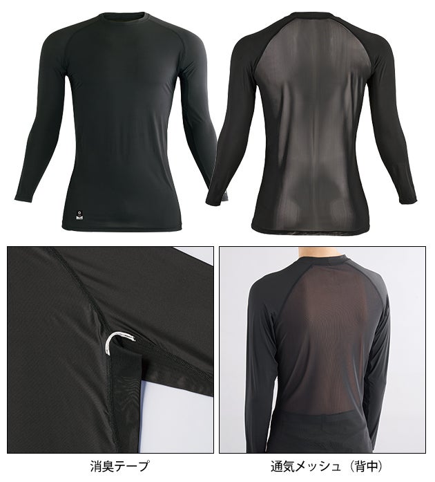ファン付きウェアインナーに最適な背面高通気メッシュ採用 シンメン 0369 春夏インナー 作業着 バックメッシュエアリーロングスリーブ S~4L