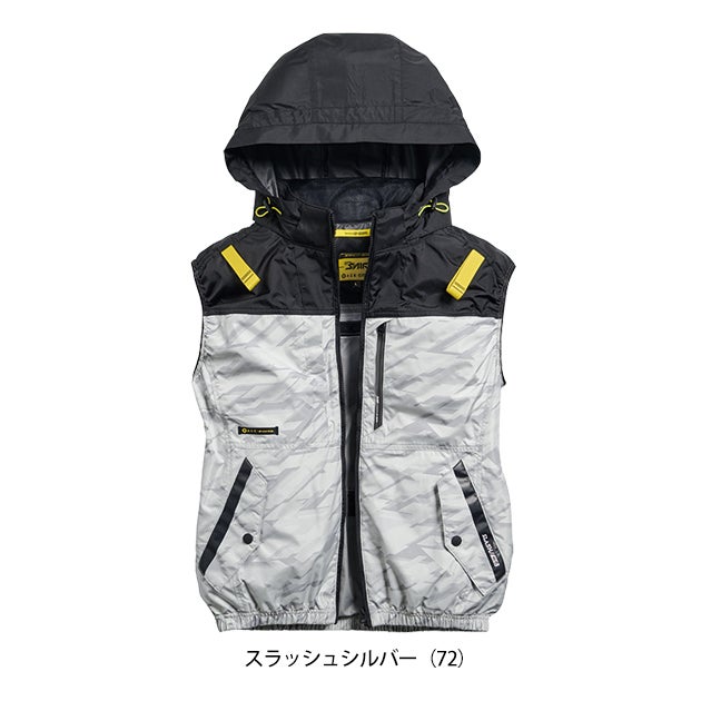 しなやかな遮熱・UVカット対応の軽量裏チタンを採用したモデル シンメン 05652 空調作業服 作業着 サイドファンフードベスト S~4L