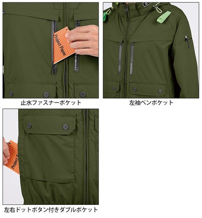 | 【特徴】 | 遮熱・UVカット対応の高耐久マイクロリップ裏チタンをユーティティに優れる大型マルチポケットスタイルで仕上げたワークシーンでの使い勝手の良さと風抜けの爽快感を得られるハイポジファンモデル ◆遮熱効果を発揮する裏チタンコーティング(遮熱ランクS45) ◆UVカット(UPF50+)マイクロリップに耐久撥水加工を追加 ◆着脱可能フードと風抜け抜群のワイドネックを一体化 ◆熱中症対策に配慮した実用的な3カ所の保冷剤ポケット ・止水ファスナーポケット(左右) ・左右ドットボタン付 ・着脱可能大型フード ・左袖ペンポケット ・ダブルポケット(スピンドル付) ・ハイポジションファン ・両脇アイスポケット ・衿裏アイスポケット ・ランヤード取出口 |