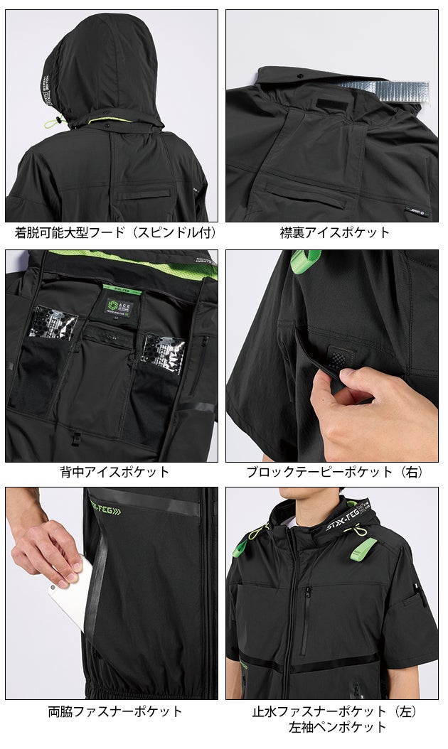 | 【特徴】 | 遮熱・UVカット機能に加え、撥水加工を施したストレッチナイロンワッシャーに実用・機能性を凝縮させ、デザインアクセントにアーバンスポーツなギミックを取り入れたハイエンドモデル ◆肌ダメージを軽減するUVカット(UPF50+)・遮熱・ランクS25) ◆着脱可能フードと風抜け抜群のワイドネックを一体化 ◆熱中症対策に配慮した実用的な3カ所の保冷剤ポケット ◆可動性に優れたマットなストレッチナイロンワッシャー ・ブロックテーピーポケット(右) ・止水ファスナーポケット(左) ・両脇ファスナーポケット ・左袖ペンポケット ・着脱可能大型フード(スピンドル付) ・背中アイスポケット ・衿裏アイスポケット |
