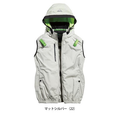 耐久撥水などの機能性と着脱可能フード、三か所の保冷材ポケット シンメン 05642 空調作業服 作業着 フードリペルベスト S~4L