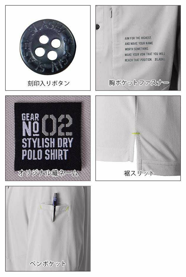 | 特徴 | 汗のべたつきを感じにくく、ストレッチ性に優れた快適素材にUVカット加工を施したスタイリッシュデザインポロシャツ ◆吸汗速乾 ◆UVカット ◆超消臭テープ(脇) ◆左袖ペンポケット ◆脇スリット ◆ストレッチ ・刻印入りボタン ・胸ポケットファスナー ・オリジナル織ネーム ・裾スリット ・ペンポケット ◎MATERIAL◎ UVカット加工を施した吸汗速乾素材 ストレッチ性と肌離れの良さを重視した素材に気になる紫外線カット加工をプラス |