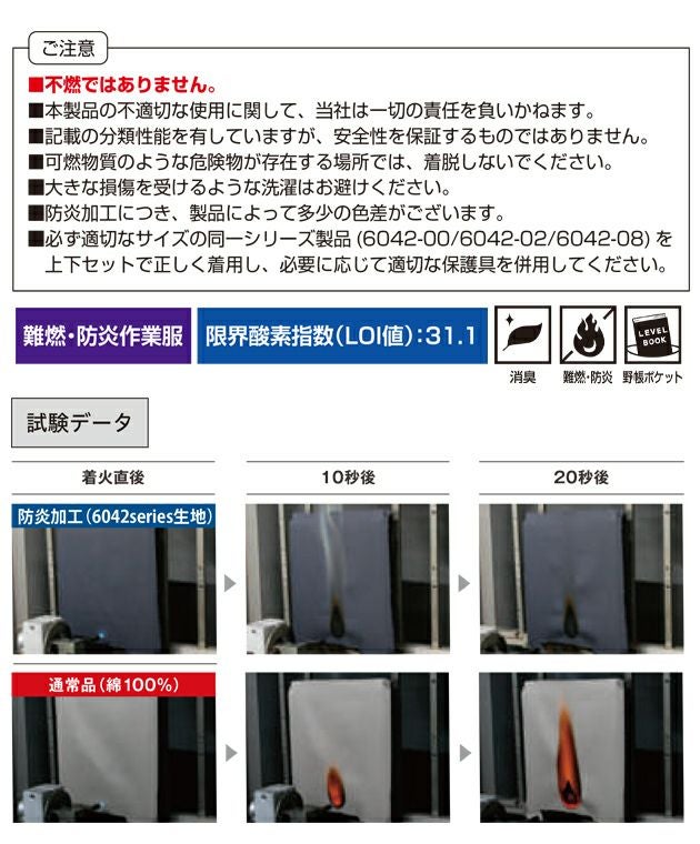必ず適切なサイズの同一シリーズ製品(6042-00/6042-02/6042-08)を上下セットで正しく着用し、必要に応じて適切な保護具を併用してください。