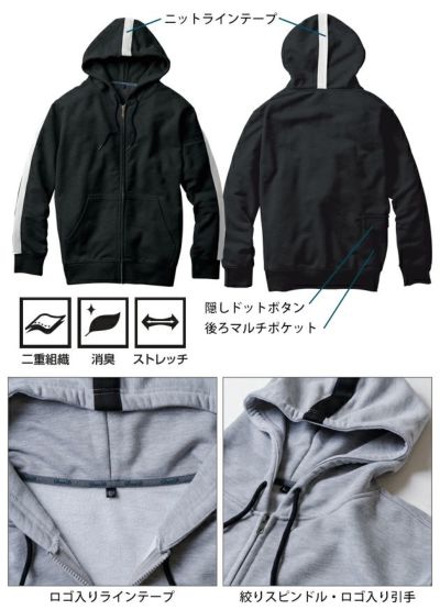 【特徴】 | ヘビーウェイトな裏パイルで抜群の着心地。 マルチポケットやカーゴポケット付きでオンでもオフでも着用できるカジュアルセットアップウェア ◆綿とポリエステルの二重構造で、綿の風合いでありながら軽くて着やすい ◆保温性があり、柔らかな肌触りの裏パイル生地 ◆肉厚で丈夫なストレッチパーカー&ストレッチカーゴパンツ ◆不快なニオイを軽減するデオドラントテープ付き ・ニットラインテープ ・袖ペン差し ・後ろマルチポケット ・袖、裾リブ仕様 ・カンガルーポケット ・デオドラントテープ ・ロゴ入りラインテープ ・絞りスピンドル ・ロゴ入り引手 |