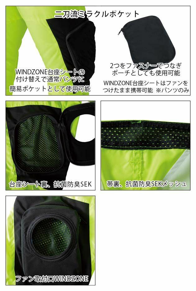| 特徴 | JIS T8127適合の高視認ファン付きウェア! 昼夜問わず視認性を確保し、安全性と快適性を融合! 断線しがちなケーブルがない! ケーブルレスという新発想! コードがまとわりつくという煩わしさから解放される1着が登場! ファンを使わない時は通常のウェアとしても使用可能! ◆パンツの仕組みがすごい! DiVaiZのバッテリー・ファン一体型タイプを使用するとコードなしであの涼しさが体感できます! ファン部分はファスナーで取り外し可能。 従来のはめ込むタイプではないので、ファンを使わない時は付属の被せる台座シートを使用して普通のパンツにも変化可能! ◆テープ幅は50mm!オラフォルジャパン社製の再帰性反射材採用! ◆帯裏には抗菌防臭メッシュ採用! ◆脇ゴム ◆◇ご使用上の注意◇◆ バッテリーファンは別売りです。 WINDZONE・DiVaiZのバッテリーファン一体型タイプのみ使用可能です。 必ず取扱説明書をお読みいただき、正しくご使用ください。 |