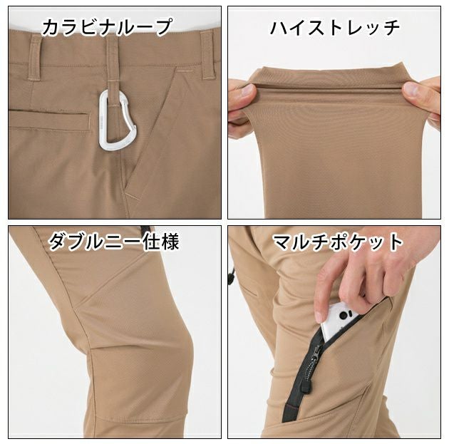 | 特徴 | 軽量・ストレッチ・吸汗速乾性を兼ね備えた高機能ハイブリッド素材。 ■とにかく軽い!Lサイズ約280g!! ■高い吸汗速乾性で快適 ■ハニカム構造がベタつきを緩和 ■ストレッチ素材使用 ■ウエストストレッチ採用 ■ダブルニー仕様 ■カラビナループ ■マルチポケット ・樹脂穴ボタン |