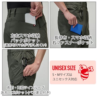 | 【特徴】 | 抜群のストレッチ性、吸水速乾、接触冷感を兼ね備え、夏場の快適性を高めたテーパードシルエットのテックパンツ! ◆軽量で伸縮性に優れた4WAYストレッチタフタ(伸長率30%) ◆吸水速乾、UVカット、接触冷感の高機能を有するナイロンタフタ ◆サラッと柔らか、ノンストレスな軽い穿き心地が特徴の細身ジョガーパンツ ◆男女ユニセックスの着用に対応 ・スマホが収納できるバックポケット(左右/着席時スマホが干渉しないポケット) ・サイズチップ(左) ・長財布、レベルブック、スマホが収納できるファスナーポケット(右) ・前ポケットは左右共にメッシュ仕様 ・ツインループ(右前、両脇) ・カーゴポケット(左ドットボタン止め) ・ペン差し(左) |