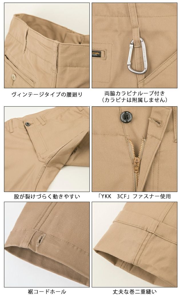 | 特徴 | 腰回りはややゆったりとしつつ、裾に向かってテーパードしていくタイトなシルエット。 ストレッチ生地により、「伸縮性」「フィット感」「動きやすさ」は抜群。 ボトムを引き締め、ラインをきれいに魅せることで、スタイリッシュな着こなしが可能。 カジュアルからハードワークまで幅広く使えるマストなアイテム。 ■「ヴィンテージタイプ」の腰回り ■股が裂けづらく、動きやすい仕様 ■丈夫な二重縫い ■カラビナループ付き ■頑丈でずり落ちないYKK製3YGファスナー使用 ■裾コードホール |
