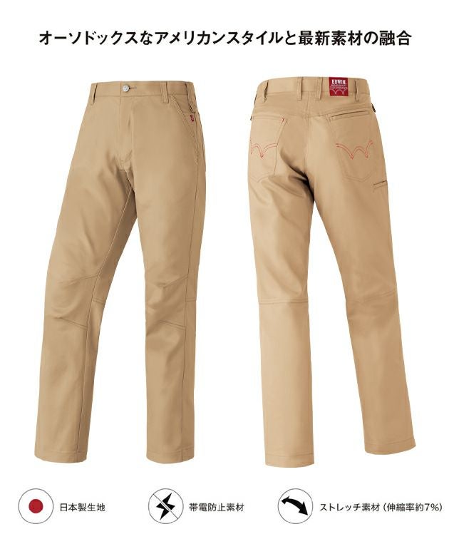 | 特徴 | オーソドックスなアメリカンスタイルと最新素材の融合! ◆膝にダーツ、右サイドにペン差しポケット、カラビナ等を装着できるサイドループ付き。 ◆伸縮率約7%のT/C素材と、アメリカン・ワーキングの要素を取り入れたバック・ヨーク仕様。 ◆尻ポケットにはWステッチマーク入り。 ◆オールシーズン対応! ◆日本製生地 ◆帯電防止素材 ◆ストレッチ素材(伸縮率約7%) ◆フロント:金属ファスナー ◆右脚:ペン差しポケット ◆左ウエスト:サイドループ |