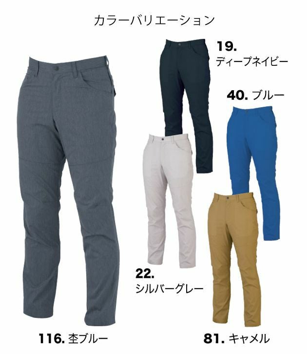| 特徴 | 引っかきや破れに強いリップストップ生地 ◆ストレッチ素材で動きやすい ◆JIS T 8118帯電防止作業服適合商品 ◆男女ペアシリーズ ・両脇Dカンループ付き ・前中心は丈夫な3YGファスナー ・ヒザダーツで曲げやすい ・内側裏付き(22シルバーグレーのみ) ・右脇コインポケット |