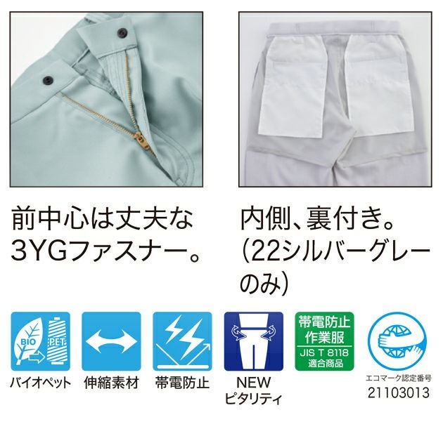 他の画像を見る 表素材に再生PET繊維を100%使用した環境型ワークウェア 70~106 自重堂 春夏作業服 作業着 エコ製品制電ストレッチノータックパンツ 87901 ¥ 4,080 税込 お気に入りに登録する