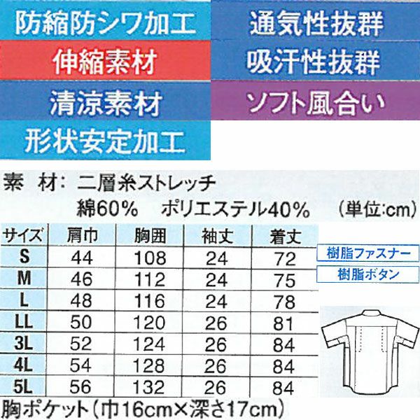肌触りが良く、吸汗性に優れた2層糸素材を使用 XEBEC ジーベック 作業着 春夏作業服 半袖シャツ 1912