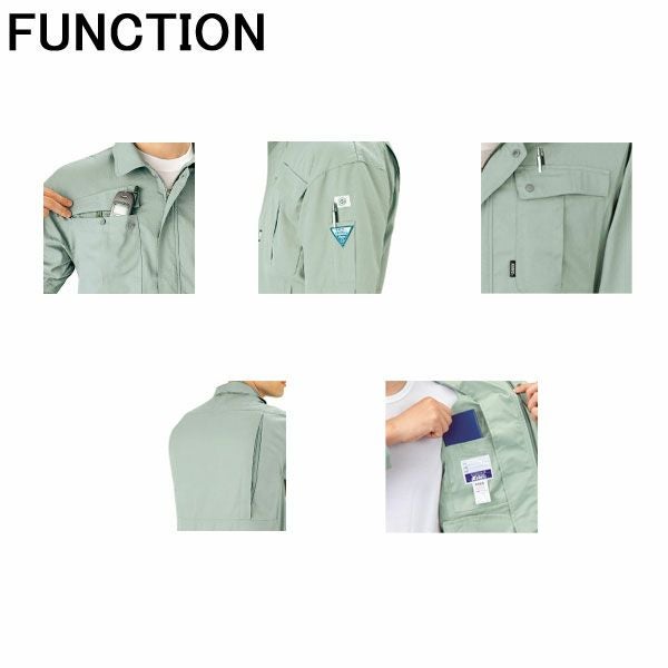 | 特徴 | 1、グリーン購入法適合商品 2、帯電防止作業服 3、JIS T8118適合商品 4、ソフト風合い 5、防縮防シワ加工 6、帯電防止素材 7、リサイクル素材 8、樹脂ファスナ 9、樹脂ボタン 10、便利な内ポケット付。 11、携帯電話収納ポケット付。 12、左胸部分には便利なペン差し付。 13、メッシュプリーツロン採用。 14、袖ペン差し付。 |