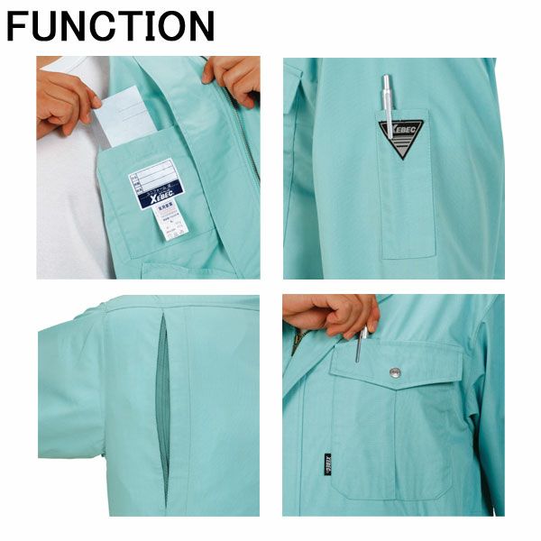 | 特徴 | 1、ソフト風合い 2、防縮防シワ加工 3、形状安定加工 4、抗菌防臭加工 5、帯電防止素材 6、綿混素材 7、超低温加工 8、金属ファスナー 9、金属ボタン 10、胸ペン差し付 11、メッシュプリーツロン採用 12、袖ペン差し付 13、便利な内ポケット付 |