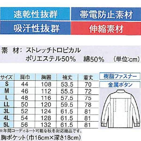 | 特徴 | 1、KaKuDaオリジナルネーム付背メッシュ 2、右胸携帯電話収納ポケット 3、ウエストシャーリング 4、特殊カッティングで腕の上げ下げがスムーズ。XEカット 5、激しい動きにもスムーズに対応するプリーツロン 6、汗を素早く吸収して乾きが早い。 7、肌触りが良くソフトでしなやか。 8、洗濯しても縮みにくくシワになりにくい。 9、快適ヨコのび素材。 10、芯のポリエステルを包み込むような高い綿カバー率!! 11、速乾性抜群 12、吸汗性抜群 13、帯電防止素材 14、伸縮素材 15、樹脂ファスナ 16、金属ボタン |