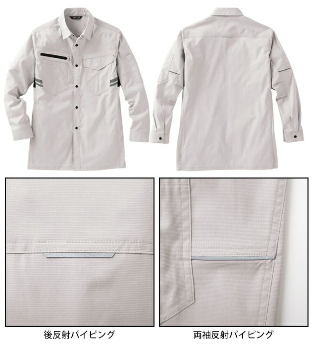 | 【特徴】 | さまざまなシーンに応じ、豊富な機能を備えたワークウェア。 洗練されたデザインが、スタイリッシュな着こなしを実現。 ◆JIS-T8118基準をクリアした安全性の高いワークウェア JIS-T8118で規定されている試験は製品形態により帯電防止効果を評価します。 面積や体積が多ければ、より帯電電化量が多くなります。 サンエスの商品は最も大きなサイズ、つまり帯電電化量の最も大きなサイズで測定し全ての基準をクリアした安全・安心で品質の高い製品をご提供しています。 ・肘タック ・トリカット仕様脇下メッシュ ・右胸ファスナーポケット ・左胸フラップペン差し ・左袖ペン差し ・両脇反射テープ ・後反射パイピング ・両袖反射パイピング |