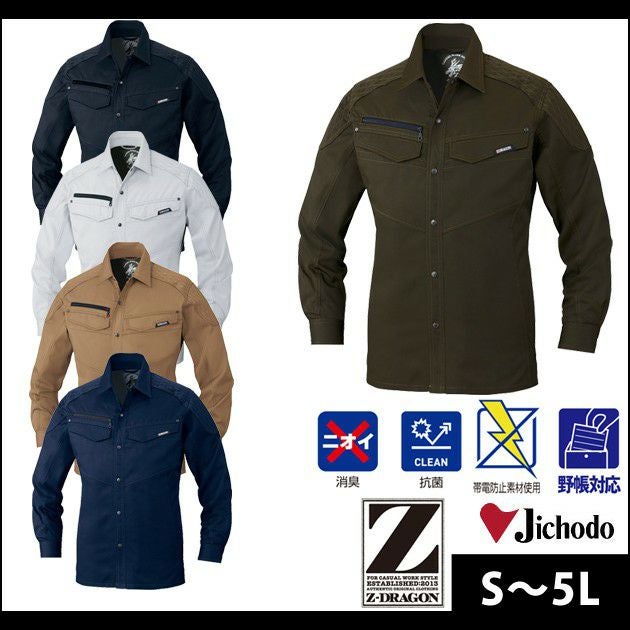 | 特徴 | 丈夫でソフトな着心地を実現! 刺し子を施し、強さとデザイン性を両立した新シリーズ登場! ■背当てプリント ■ワンポイント(左胸) ■携帯電話収納ポケット ■消臭&抗菌テープ(両脇・両肩) ■肩部分刺し子 ■衿裏飾りステッチ ■背中ベンチレーション(メッシュ) ■脇下メッシュ ■ポケット/金属ファスナー ■ボタン/金属 ■野帳対応 ■帯電防止素材使用 |
