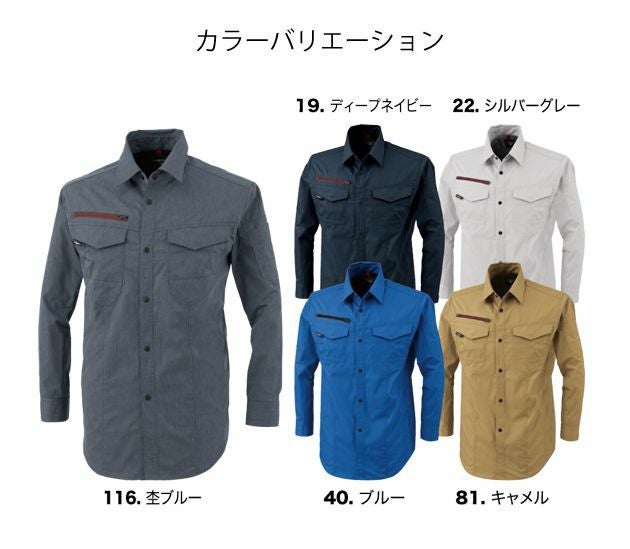 | 特徴 | 引っかきや破れに強いリップストップ生地 ◆ストレッチ素材で動きやすい ◆JIS T 8118帯電防止作業服適合商品 ◆男女ペアシリーズ ・左胸二重ポケット ・左胸ポケットペン差し付き ・左袖ペン差し ・通気性の良い背当てメッシュ付き ・長財布もすっぽり入る深めのファスナーポケット ・ボタンは隠し仕様でモノを傷つけにくい ※右胸ファスナーポケット(巾12.5cm×深さ20cm) ※左胸ダブルポケット(巾13.5cm×深さ17.5cm) ※両胸ポケット(巾12cm×14cm) |