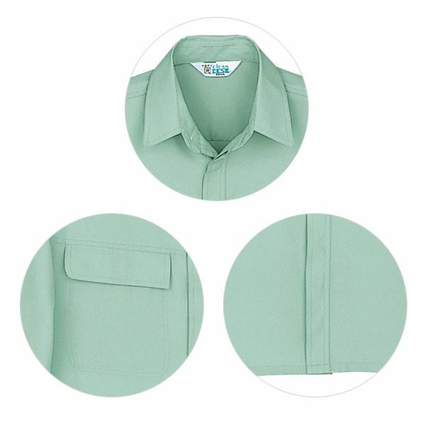 1、ワンポイント 2、帯電防止素材使用 3、低発塵 4、抗菌防臭加工 5、帯電防止JIS規格合格商品 6、低発塵素材リバーセル 7、CLEANDESK 8、清浄度クラス1000 9、ペアコーディネート |