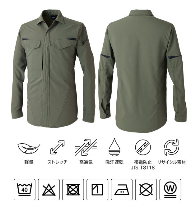 他の画像を見る 再生糸使用のSDGs対応モデル!帯電防止性も備える長袖シャツ! S~3L|BURTLE バートル 春夏作業服 作業着 長袖シャツ(ユニセックス) 6215 ¥ 4,160 税込 在庫切れ お気に入りに登録する
