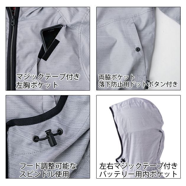 | 特徴 | 風漏れを防ぐ裏PAコーティングを施し全身くまなく風が循環する、ナチュラルカラーとデザインのウェア。 ◆フロントファスナーオリジナル刻印入りスライダー ◆マジックテープ付き左胸ポケット ◆落下防止ドットボタン付き両脇ポケット ◆フード調整可能なスピンドル仕様 ◆左右マジックテープ付バッテリー用内ポケット(接続ケーブル通し穴付き) ◆シリコンネーム付き ◆フロントファスナーTHC ◆風漏れ防止袖口パイピング ◆風漏れ防止裾回りパイピング ◆ファン取付補強口WINDZONESTYLE ◆衿裏まで風が流れる背中ダクト ◆コードストッパー ◆内側垂れ防止ループ |