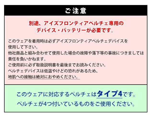 氷を纏う。新たなる冷却ユニット「ペルチェ」対応ウェア登場! アイズフロンティア 冷却ペルチェ 作業着 冷却ペルチェ専用アウター長袖ワークジャケット 100