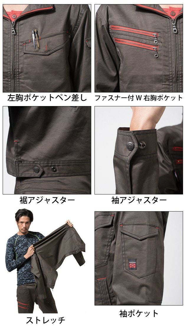 | 特徴 | 「スーパーストレッチ」と「3Dスタイル」に「プリント柄」を加えた男前ワークウェア! 綿のナチュラルな着心地に抜群のストレッチ性を機動力大幅アップ。 ■左胸ポケットペン差し ■ストレッチ ■ファスナー付きW右胸ポケット ■腕ポケット ■裾アジャスター ■袖アジャスター |