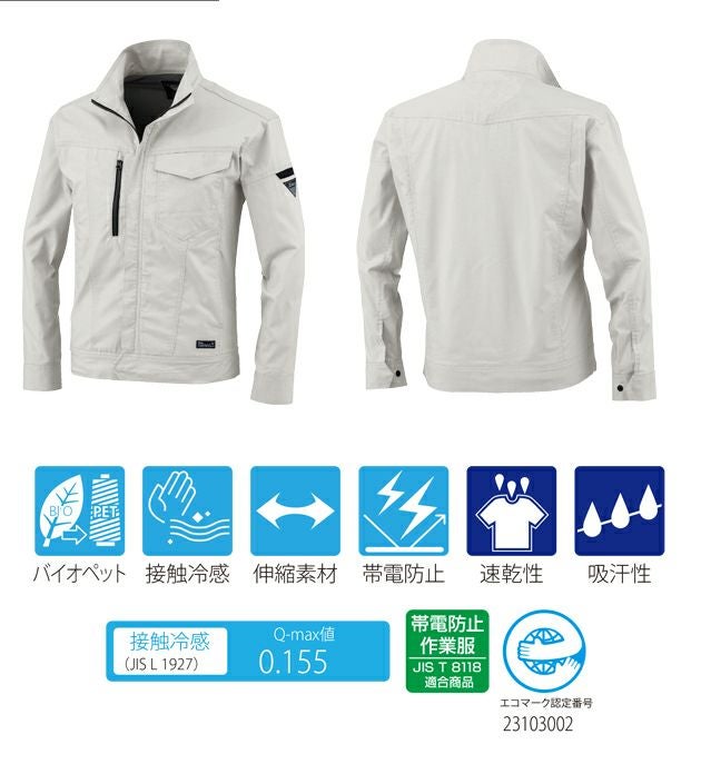 | 【特徴】 | 環境に優しい植物由来制電対応T/Cストレッチ ストレッチ性に優れたエコロジー素材「Sorona(R)」を使用し、20%を超える高い伸長率で動きやすく、フラットに仕上げることでヒンヤリとした着心地を実現しました。 帯電防止作業服JIS T8118にも適合し、様々な職種で安心してご着用いただけるシリーズです。 ・ストレッチ素材 ・左袖ペン差し ・物が落ちにくいファスナーポケット ・左胸ポケットはペン差し付き ・内ポケット付き ・通気性の良い背当てメッシュ付き ・袖口は二段階に調整できるアジャスター付き |