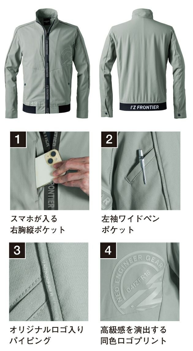 | 【特徴】 | With a sophisticated urban sense 幻想の摩天楼にたたずむ孤高の世界。 アーバンスポーツを体現するラグジュアリーワークモデルここに極まる。 ◆アーバンスポーツをコンセプトとした新感覚ラグジュアリーワークモデル。 高品質な細番手のナイロン原糸を使用し細かく、且つ絶妙な凹凸感を形成した素材を採用。 繊細で優しい肌触りと高級感を放つルックスを実現。 ◆JIS基準に適応した接触冷感指数を有し快適な着心地を実現。 加えて素材肌側の点接触構造が汗ばむ季節の不快感を軽減いたします。 ◆独特な素材構造により、適度な逃熱性能と通気性能を両立。 ◆しなやかで軽量なライトウェイト素材ながらも、優れた表面摩擦強度と一般基準2倍強の引裂き強度も兼ね備えハードワークにも適応可能な堅牢性も併せ持ちます。 ◆伸長率ヨコ約24%、伸長回復率(1時間後) 約84%の快適なストレッチ性能を有し、ストレスのない快適な動き易さを実現します。 ◆ブランドロゴプリントを施した止水ファスナーやロゴ刺繍入りパイピングテープ、同色系光沢ラバープリントや衿裏ロゴプリント等、様々なギミックを搭載しアーパンスポーツを体現するシンプルリッチな商品に仕上げました。 ◆国産YKK社製の金属釦を使用する等、細部にまで拘りを追求しています。 ・スマホが入る右胸縦ポケット ・左袖ワイドペンポケット ・オリジナルロゴ入りパイピング ・高級感を演出する同色ロゴプリント |