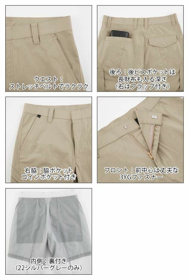 | 特徴 | ストレッチ制電のユーティリティワークウェア ストレッチ性と丈夫さを兼ね備えた新開発TC制電ストレッチ素材を使用。 フルハーネスをしたままでも使えるポケットやモノの落下を防止するファスナーポケットを装備。 ◆ウエストはストレッチベルトでらくらく ◆後ろピスポケットは長財布も入る深さ ◆右後ろポケットフラップ付き ◆前開きは丈夫な3YGファスナー ◆右脇ポケット、コインポケット付き ※シルバーグレー(22)のみ内側裏付き |