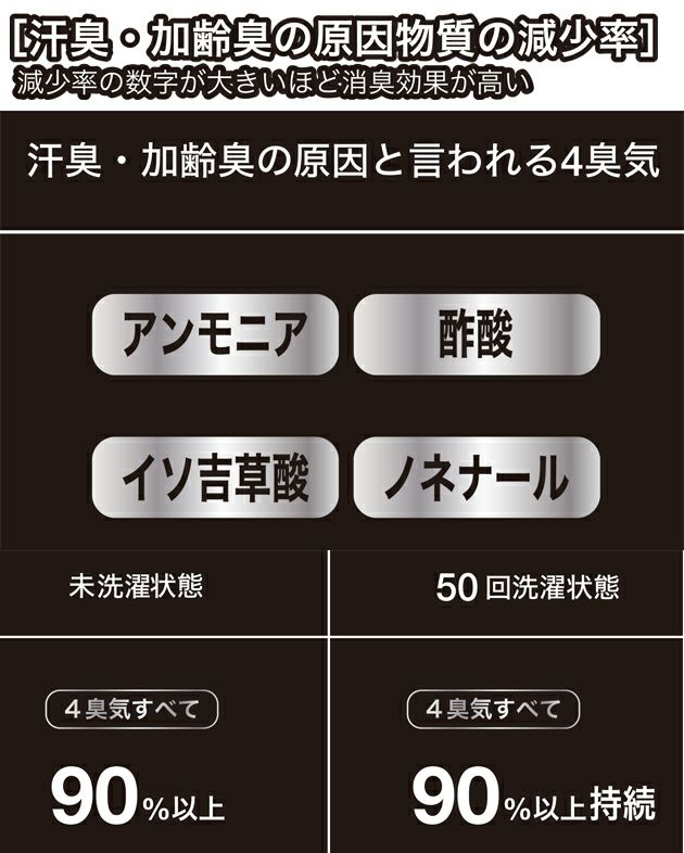 【特徴】 | 本体生地のナイロン部分には高耐久素材CORDURA(R)を100%使用、ポリウレタン部分には消臭効果のある特殊なポリウレタンを100%使用したハイスペック生地で作り上げたサポートウェアシリーズです。 洗濯しても効果が持続する消臭効果に加えて、夏に嬉しい接触冷感・吸汗速乾・UVカットの機能も搭載した最強インナーウェアです。 消臭効果:4(臭気に対して90%以上) 接触冷感性:q-max0.29 UVカット:紫外線遮蔽99% ◆タフ素材(CORDURA(R)) ◆消臭 ◆接触冷感 ◆吸汗速乾 ◆UVカット ◆ハイストレッチ |