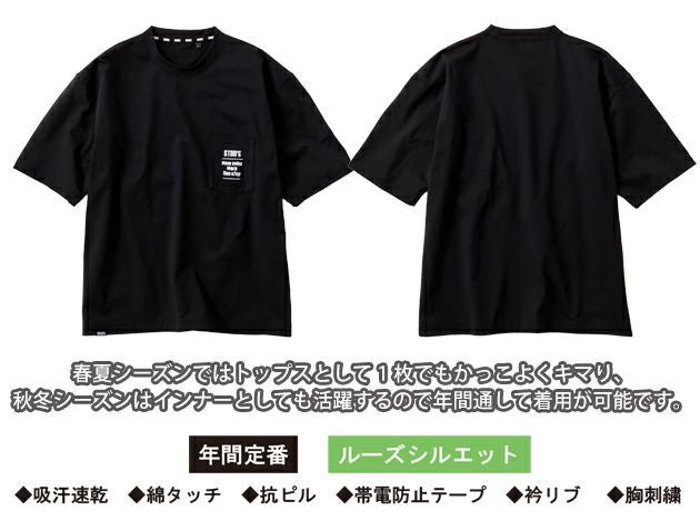 | 【特徴】 | 定番で人気のスタッズTシャツシリーズにドライ感が持続するポリエステルタイプを追加しました。 ポリエステルにすることで綿100%のデメリットでもある乾きの遅さや汗を吸って重たくなる部分を解消し春夏シーズンでも心地よく着用できます。 本体ポリエステルはテカリを抑えたマットな見た目と綿に近いタッチ感を持つ生地を採用しているので高級感があります。 ◆吸汗速乾 ◆綿タッチ ◆抗ピリング ◆帯電防止テープ ◆衿リブ ◆胸刺繍 |