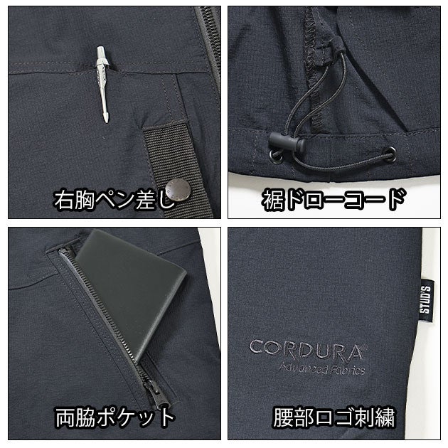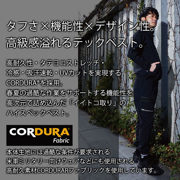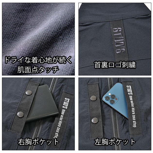 | 【特徴】 | 「STUD'S(スタッズ)」。 それは「大人の作業着」。 春夏シーズンのNEWスタイル! おしゃれブランドSTUD'Sからタフさと機能性とデザイン性を併せ持ったテックベストが登場! ◆CORDURAファブリックを使用 本体生地には過酷な条件が要求される米軍ミリタリー向けウェアなどにも使用される高耐久素材CORDURARファブリックを使用しています。 ◆ストレスフリーで快適な着心地 ストレッチ性を表す伸長率は縦28%・横33%と縦横ともに高い伸縮性があります。 さらに生地裏面は汗をかいてもべたつきにくい点接触になっているので暑い季節もストレスフリーな着心地を体感できます。 ◆冷感×吸汗速乾×UVカット 高い接触冷感性(q-max0.28)、汗を素早く吸って乾かす吸汗速乾性。 日焼けを防止するUVカット性(遮蔽率99%)と春夏の作業をサポートする様々な機能を搭載しています。 ※q-maxの目安:個人差にもよりますが0.2で若干ヒンヤリ、0.3でヒンヤリ、0.4でかなりヒンヤリが一般的な目安と言われています。 ◆イイトコだらけのNEWスタイル ロンTやコンプレッションと合わせるだけでおしゃれに見えるベストスタイルは、ブルゾンよりも涼しくて動きやすく作業中の快適性がUPします。 残暑が続く昨今、長いシーズン活躍します。 ◆使い勝手の良い裾調整機能 裾ドローコード付きで、絞りの有無や絞り具合で自分好みのシルエットに調整が可能です。 裾を絞ると丈の長さも好きな位置に調整できるため腰袋を付ける際も生地が邪魔にならず快適です。 ◆高級感&抜群の収納力 左胸はテープの上にシル バーでロゴ刺繍を施し高級感が漂います。 両脇のファスナーポケット、両胸のボタン付きポケット、隠し面ファスナー付きポケットも大容量で様々なものを収納できます。 |
