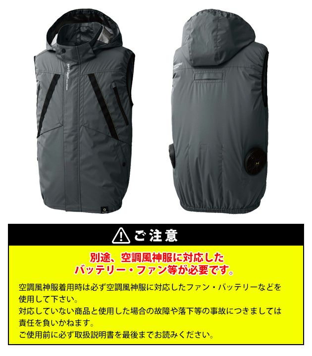 | 【ご注意】 | ファン、バッテリーは別売りです。 空調風神服着用時は必ず対応するファン・バッテリーをご使用ください。 取扱説明書をよく読み、正しくご使用ください。 |