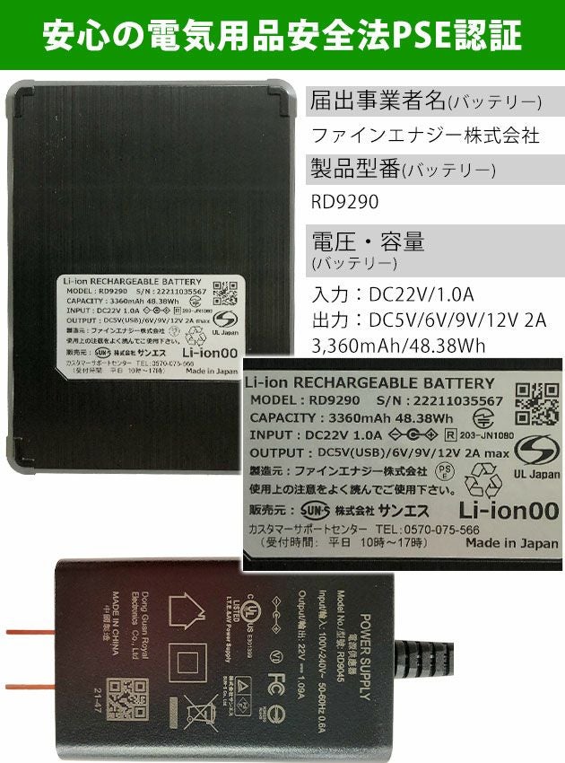 | 製品型番(バッテリー):RD9290 |