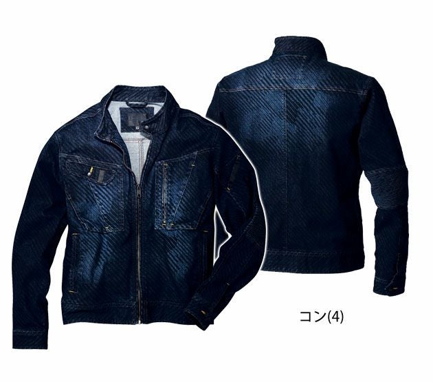 ワイルドで都会的!細身×ストレッチデニムがイチオシポイント! S~3L 寅壱 作業着 秋冬作業服 デニム蛇腹ライダースジャケット(ストライプカモ) 8980-554