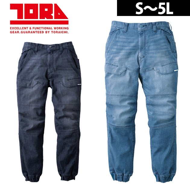 バイオブラスト加工によるビンテージ感のあるデニム生地を採用 寅壱 8923-235 春夏作業服 作業着 デニムカーゴジョガーパンツ S~4L