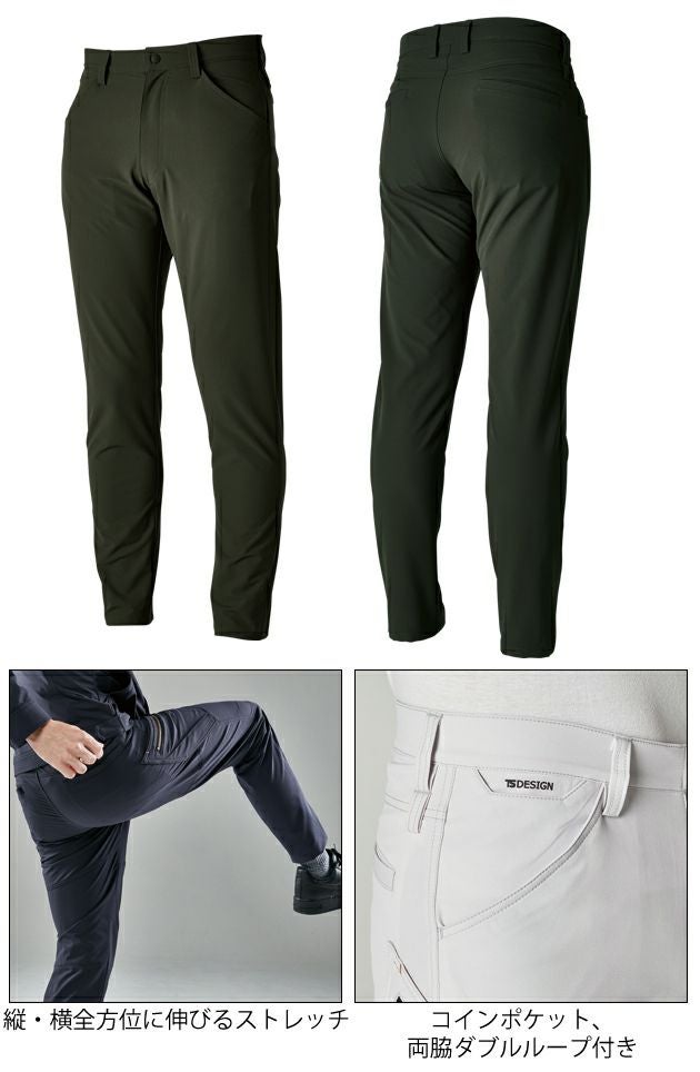 | 特徴 | JIS T8118規格適合の「静電気帯電防止作業服」 スッキリしたシルエットが魅力のパンツ ◆縦・横全方位に伸びるストレッチ。 TS4DエコダブルクロスはTS DESIGN独自開発の素材。全方位にのびるストレッチ性、帯電防止の機能が備わった新しいワークウェアのスタンダードを作る可能性を秘めた素材となっている。 ・コインポケット、両脇ダブルループ付き |