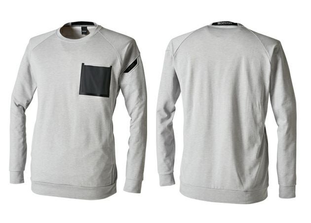 胸のポケットは圧着仕様「TSマージテック」で付いているので裏側に縫い糸が無く、着心地が良い。左袖にはペン差し等で使えるマルチスリーブポケットを付けている。