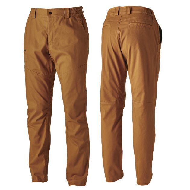 | 【特徴】 | ポリウレタンを使用せずストレッチ性を持たせた綿100%の風合いで耐久性に優れたワークウェア ◆TSハイブリッドコットン 経糸には綿100%の糸、緯糸には独自に開発した捲縮ポリエステルと綿の二重構造糸を使用。 ポリウレタンを使うことなくストレッチ性を持たせている為、劣化によるストレッチ性の低下やひざ抜けのリスクを軽減している。 また、綿100%の風合いを実現させている。 ・ワタリがゆったり、裾に向かって細くなるテーパードシルエット ・両脇ウエストゴム仕様 ・股下クロッチ仕様 ・ポケット底二重補強 ・玉縁ポケット付 |