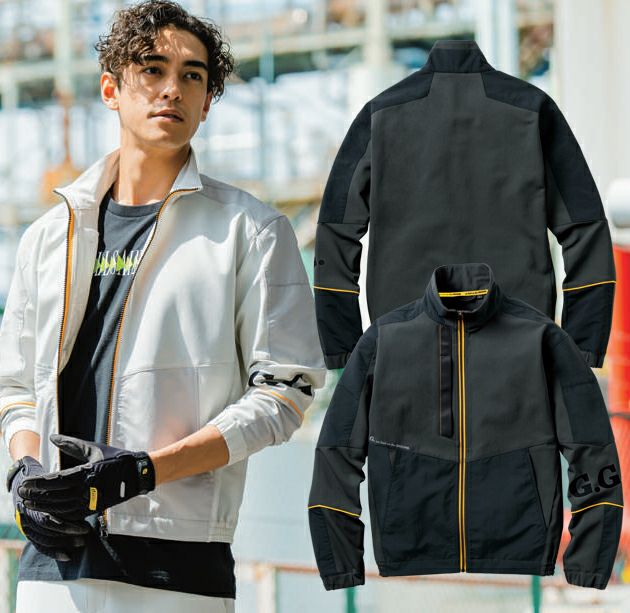 | 【特徴】 | ジャージのような着心地に配色補強布とアクセントカラーが光るデザイン性。 着る楽しさが倍増するG.G.ならではのスポーティーワークウェア。 ◆風を通しにくい高密度ストレッチ生地を使用 ◆縦横に伸びる、動きやすさを追求した高いストレッチ性 ◆不快なニオイを軽減するデオドラントテープ付き ◆反射ロゴプリントで高い視認性 ◆軽くて丈夫なナイロンミニリップストップを部分使いで強度アップ ・ロゴ入りラインテープ ・異素材使い ・左脇二重ポケット ・大容量ポケット ・引手ロゴプリント ・胸ファスナーポケット ・デオドラントテープ ・袖ペン差し ・反射ロゴプリント ・ロゴプリント ・ドットボタン(隠し) |