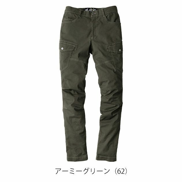 | 【特徴】 | 超のびのびストレッチ現場服! ユーズド感のある洗い加工でおしゃれ! ポリウレタン糸が入っているからのびのびストレッチ! 綿特有の柔らかい風合いで肌触りも抜群! ◆膝ダーツで曲げやすい ◆フロントファスナーは丈夫な3YGファスナー ◆両脇Dカンループ付き ◆両脇フラップ・後ろマチ付きカーゴポケット ◆右脇コインポケット ◆裾内側スピンドル通し穴 |