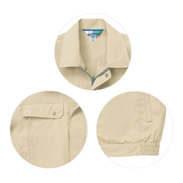1、左胸携帯ポケット 2、ノーフォーク 3、左右胸ファスナー付タテポケット&左右胸ポケット 4、左袖ペン差し 5、エコマーク商品(グリーン購入法適合) 6、ペットボトル、リサイクル繊維 7、制電素材 |
