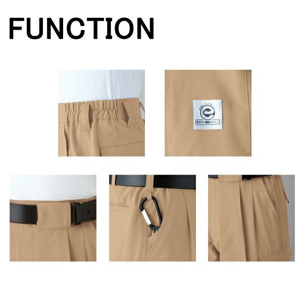 | 特徴 | 1、JIS帯電防止規格合格 2、帯電防止素材使用 3、エコマーク認定 4、再生繊維使用 5、エコマーク 6、カラビナループ&内玉ポケット 7、ツータック 8、バックルガード 9、パンツ脇シャーリング 10、ファスナー樹脂引き手金属 11、ケミカルリサイクル繊維60%使用 |