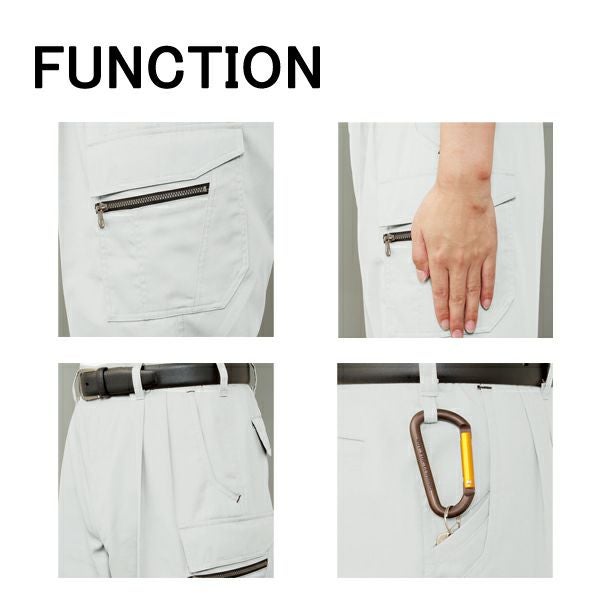 | 特徴 | 1、JIS帯電防止規格合格 2、帯電防止素材使用 3、エコマーク認定 4、抗菌防臭 5、防汚加工 6、ファスナー樹脂引き手金属(フロント) 7、樹脂(サイド) 8、カラビナループ&内玉ポケット 9、再生PET繊維65%使用 10、ツータック 11、ガンポケット 12、サイドダブルポケット(ファスナー付) |