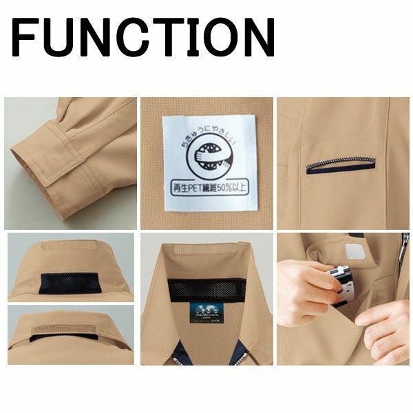 ”ファンジオーネ(機能)”の名を持つ先進のワーキングウエア。ガスや電気、整備や運送など、様々な現場での作業をサポート。 JIS帯電防止(JIS T8118対応)ウエアは、ガスや電気等の危険な現場にも対応。再生繊維使用の完全リサイクルで、地球にも優しい。