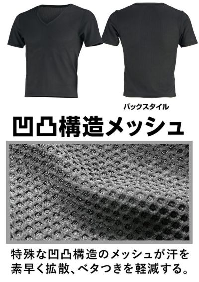 | 【特徴】 | オールシーズン対応、高機能次世代インナー 生地の凹凸面が汗を拡散しベタツキ感を抑える ◆凹凸構造メッシュ 特殊な凹凸構造のメッシュが汗を素早く拡散、ベタつきを軽減する。 ◆点接触 凹凸のある生地で肌への接地面が少なく張り付きによる不快感を減少させる。 ◆通気性 生地全体に施されたクレーター型メッシュにより通気性抜群。 ◆吸汗速乾 かいた汗をすばやく吸収し拡散させるため衣服内をドライに保つことができる。 ◆汗冷え軽減 通気性と吸汗速乾機能を両立することで汗をかいた後の汗冷えを抑える。 ◆ストレッチ 圧迫感の少ないストレッチ素材を使用し快適な着心地を実現。 |