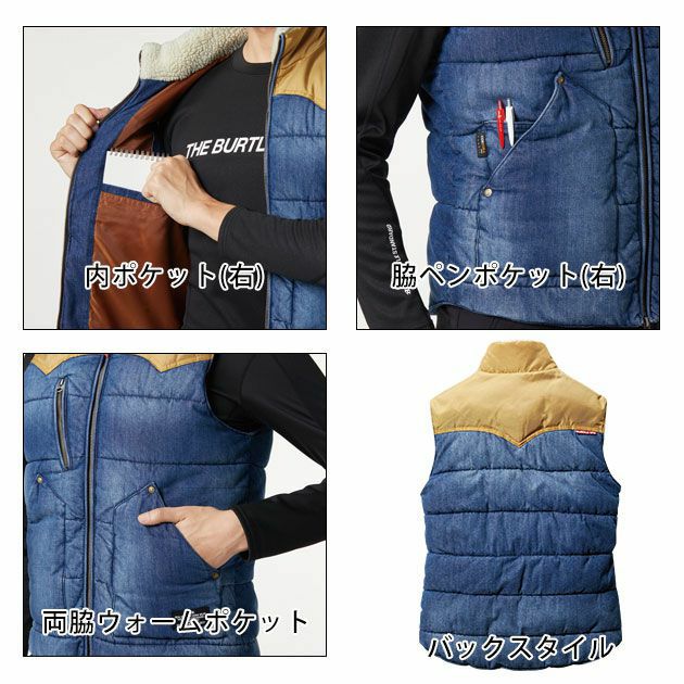 ヴィンテージ感がおしゃれ!2021年パッドが付いたサーモクラフト BURTLE バートル 電熱ベスト 作業着 防寒ベスト(ユニセックス) 電熱パッドセット(2021年モデル) 5004・TC250
