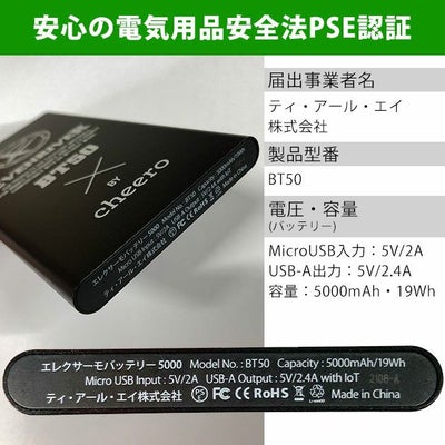 | 入出力(バッテリー):MicroUSB入力:5V/2A USB-A出力:5V/2.4A |